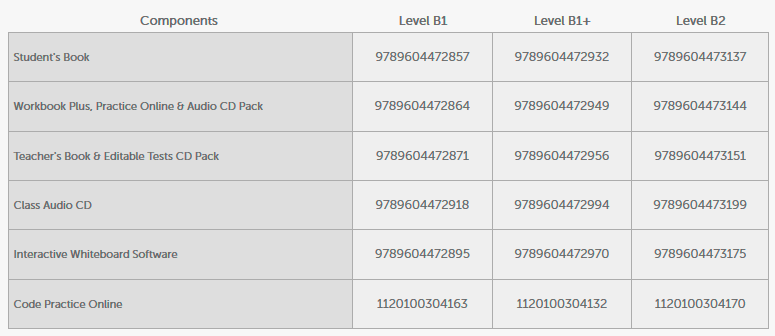 Units cover general topics common to international exams, approached in a way that is appropriate to the experience and interest of teenagers preparing for school-leaving exams. The clear yet integrated approach develops all four language skills while systematically building up topic-based lexis and grammar, and there is efficient recycling of grammar and vocabulary throughout the course.